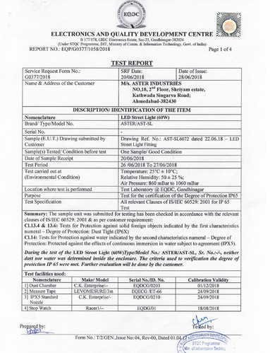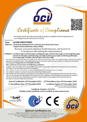 Remarks : This certificate of compliance is based on the evaluation of a sample of the above mentioned Products. It does not imply and assessment of the mass-production of the product. This certificate holder may use this certificate in connection with the test report. The certification body should be informed.